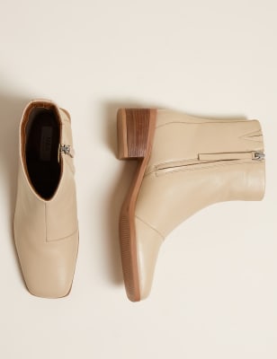 Leather Block Heel Square Toe Ankle Boots