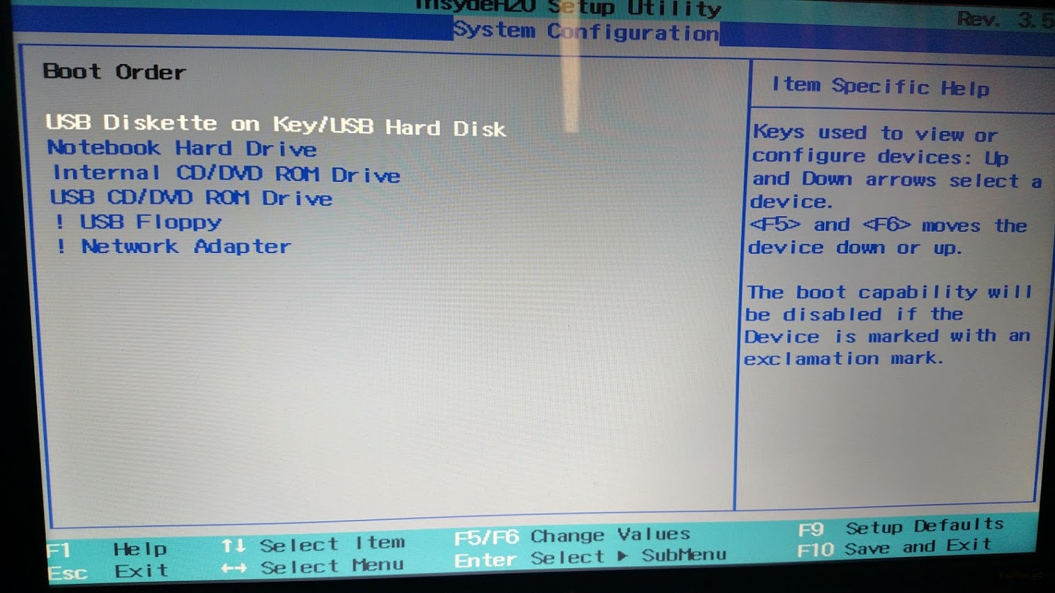 Now select the System Configuration tab and then select Boot Order. I want see what is in BIOS but can not get in any of the ways mentioned. To enter into BIOS press F10 key while booting up your laptop.